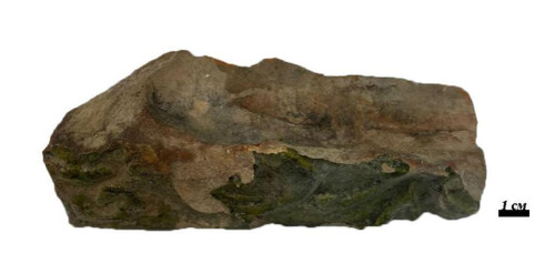 Фрагмент кафли покрытой зелёной глазурью с растительным орнаментом. Найден на территории Малого замка в Новогрудке. Раскопки А.А. Добриянов, 2000 г.