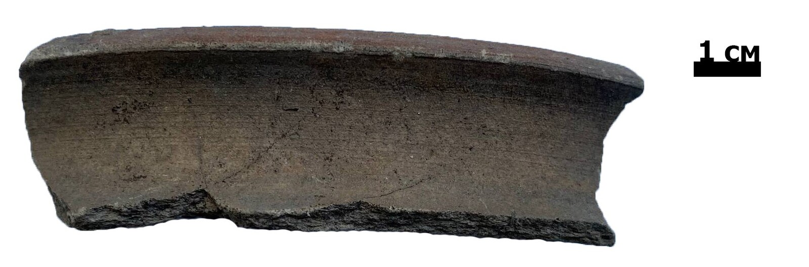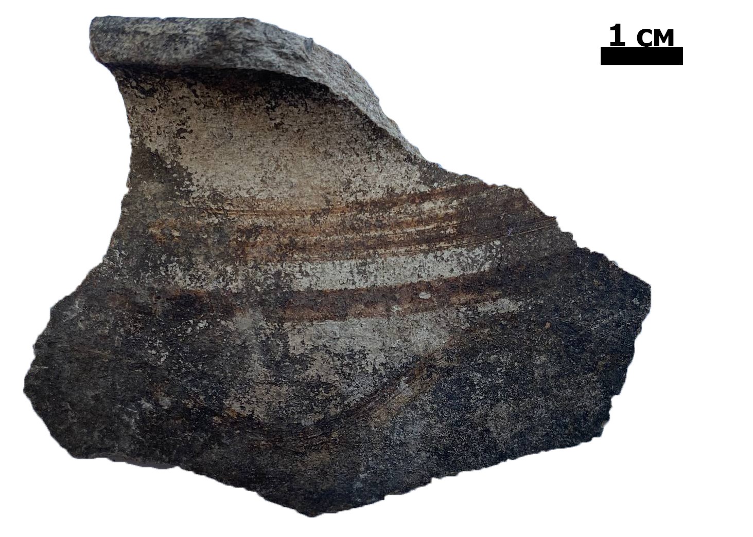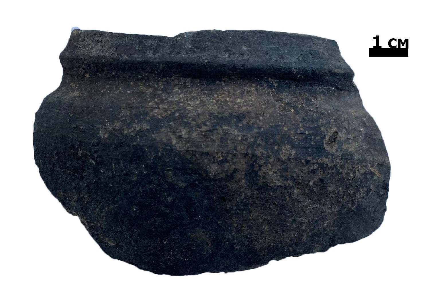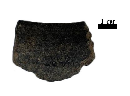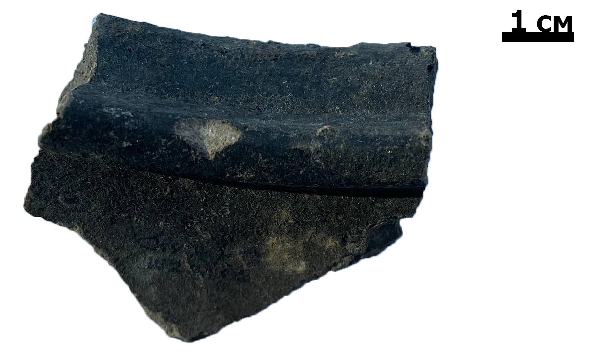 Фрагмент венчика горшка чернодымленного. Найден на территории бывшего народного дома в г. Слоним. Раскопки Г.Н. Акинч...