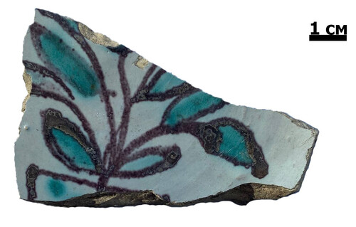 Фрагмент бортика тарелки глазурированной,с растительным орнаментом. Найден на территории бывшего народного дома в г. Слоним. Раскопки Г.Н. Акинчиц, 1990 г.