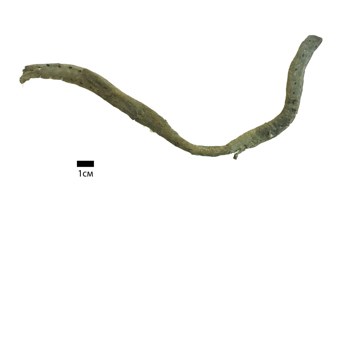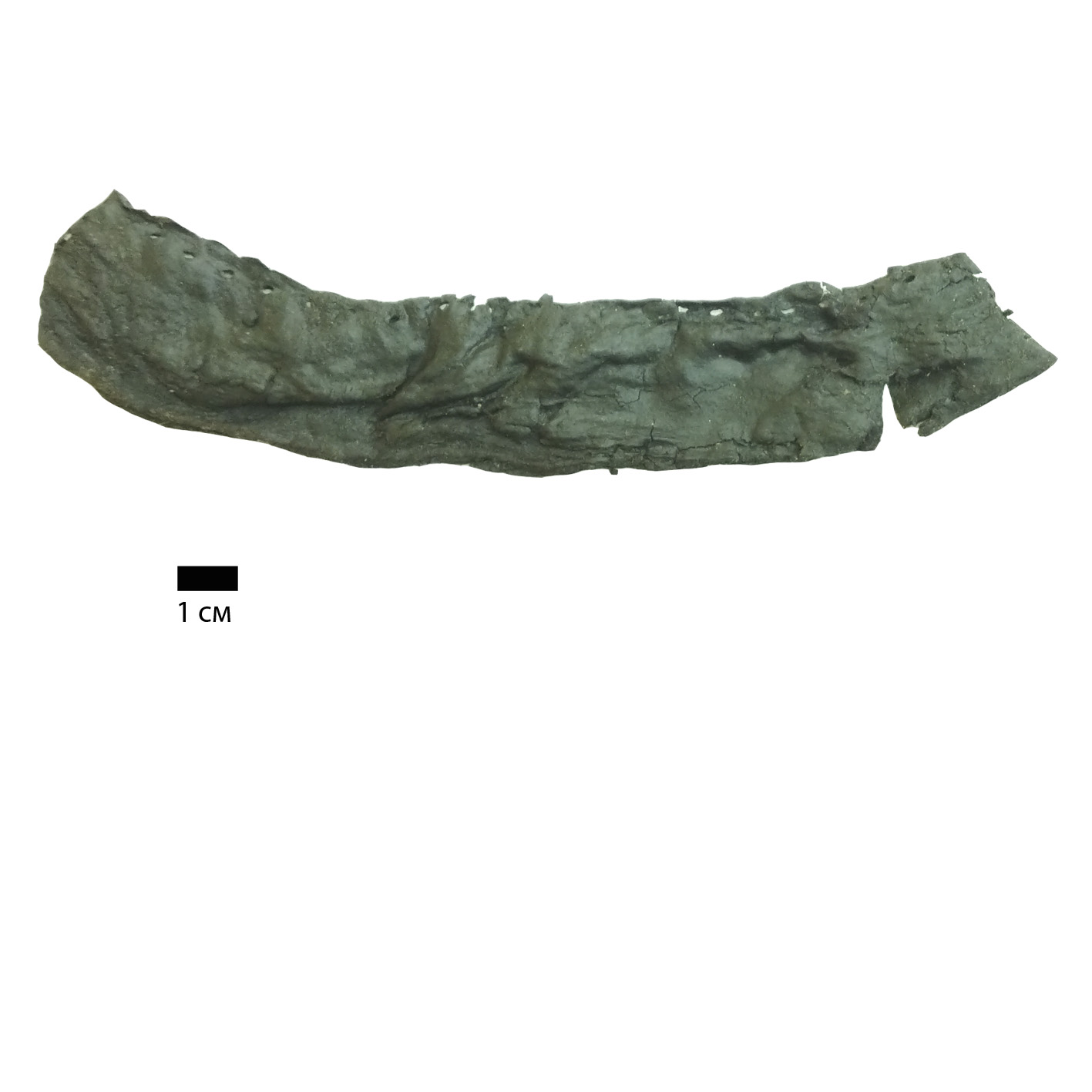 Фрагмент предположительно обуви или другой галантерейной продукции.Был найден в результате археологических раскопок С...