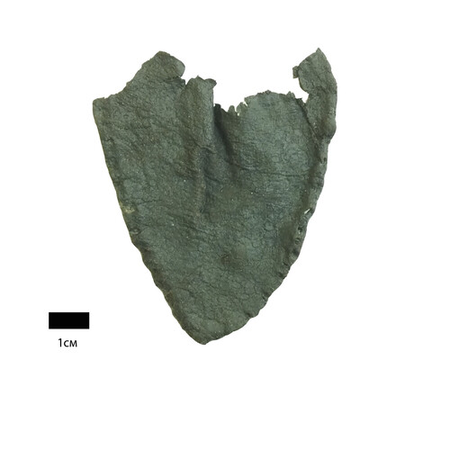 Клапан вероятнее всего от кошеля. Был найден в результате археологических раскопок Советской площади г. Гродно в 2005 году Г. Н. Семенчуком. Отверстия проделаны круглым шилом. Расстояние между стяжками составляет около 5 мм. Толщина изделия составляет около 2 мм. Кожа плотная, но при этом эластичная.