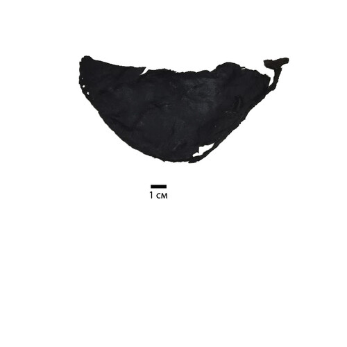 Клапан от кожаной поясной сумки без узора. Был найден в результате археологических раскопок г. Гродно в 2005 году Г. Н. Семенчуком.